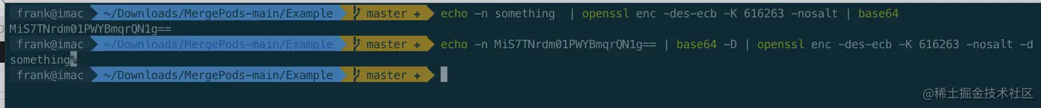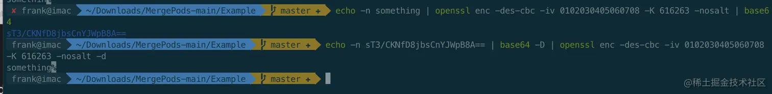 echo -n "需要加密的字符串" | base64 -D | openssl enc -des-cbc -iv "向量" -K "密钥" -nosalt -d