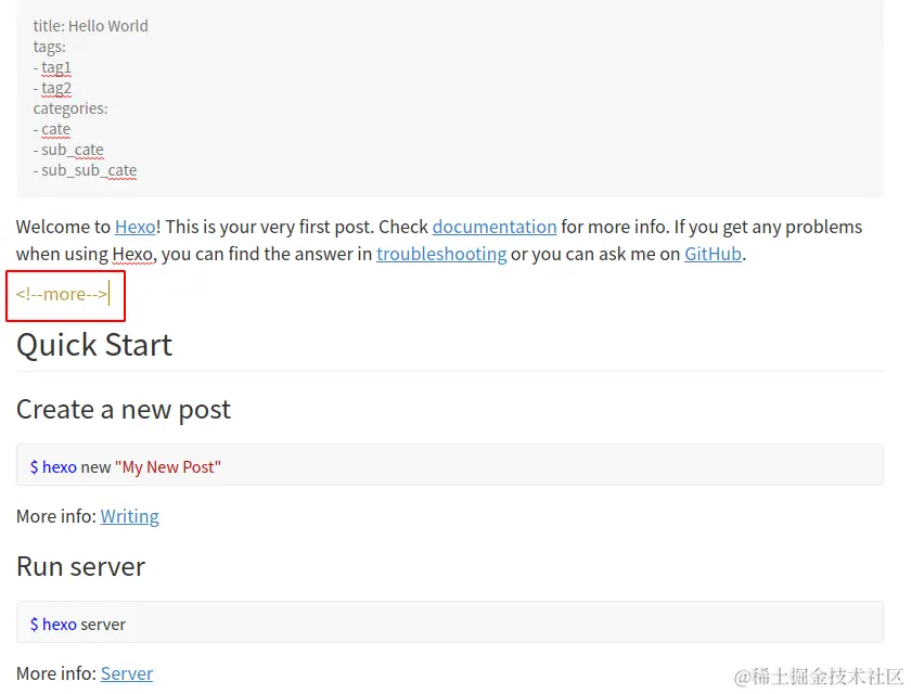 本身对文档没有影响,但在Next中会被识别为摘要截断的标志。标志之后的内容不会在首页显示。