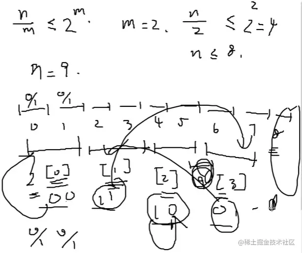 把n bit按每个块m bit的大小划分 能划分出\frac{n}{m}个块, 但是你想每一个位置都一一对应一个地址的话,也就是每一个块都能被找到的话