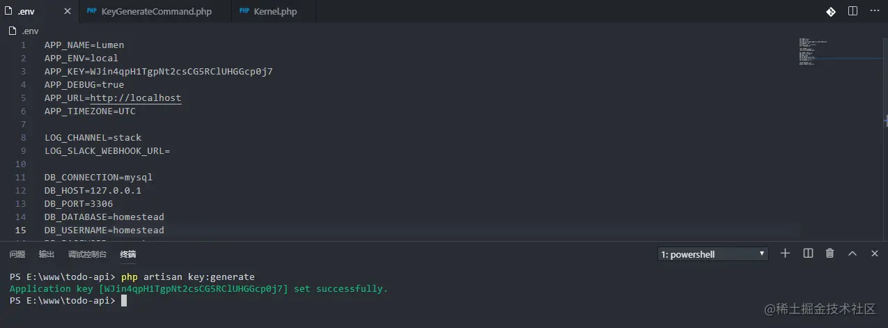 打开终端输入生成 APP_KEY 的命令,生成成功。