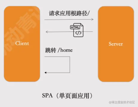 客户端路由是单页面应用,我们通过js来动态控制页面展示的内容,对于数据来说,通过ajax的方式异步从服务端获取。