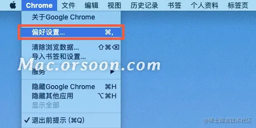1.在 Chrome 浏览器中打开“偏好设置”。