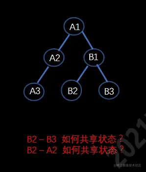 B2想要和A2共享状态,我们可以将状态放在A1中