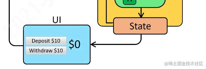 当事件产生了之后,想要修改State,但是不能够直接去修改,需要通过Dispatch发送一个Action给Reducer