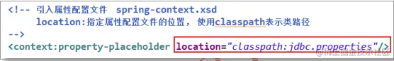 该属性文件若要被 Spring 配置文件读取,其必须在配置文件中进行注册。使用 标签。