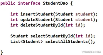 在 Dao 接口的包中创建 MyBatis 的映射文件 mapper,命名与接口名相同,本例为StudentDao.xml。mapper 中的 namespace 取值也为 Dao 接口的全限定性名。
