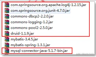 连接数据库使用 Druid 连接池和 DBCP 连接池,所以导入 Druid 和 DBCP 的 jar 包。
