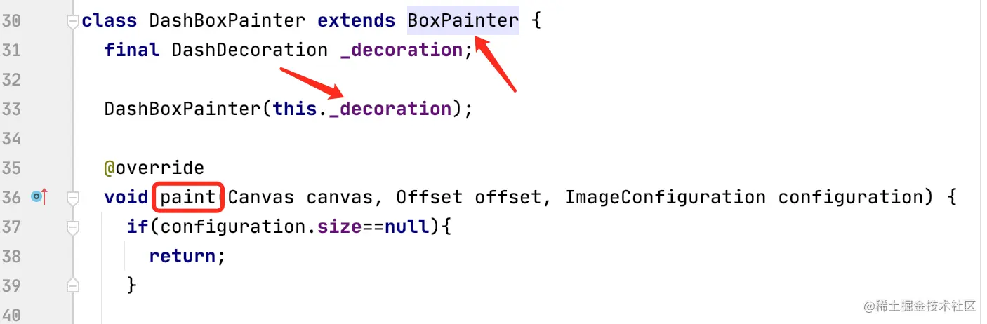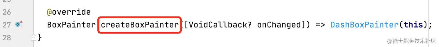 在 DashDecoration 中必须实现抽象方法 createBoxPainter ,返回一个 BoxPainter 对象。