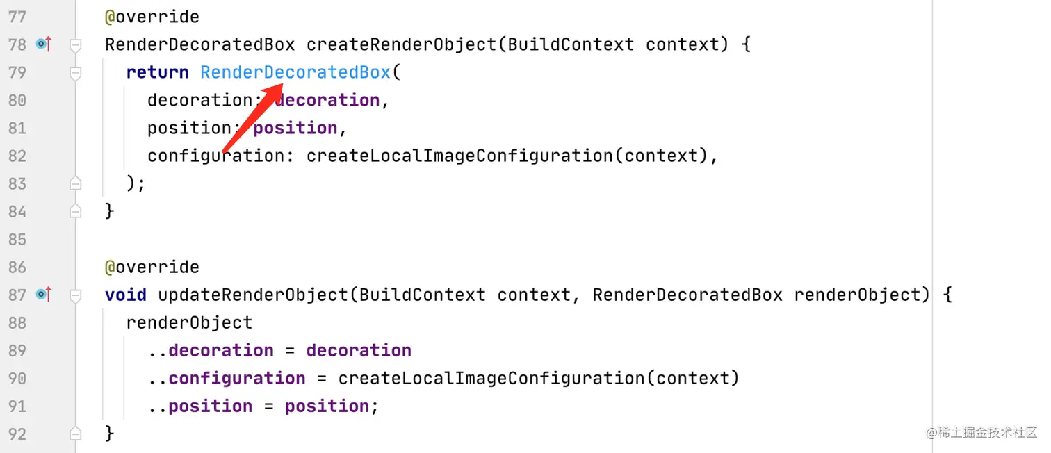 DecoratedBox 继承自 SingleChildRenderObjectWidget ,内部维护 RenderDecoratedBox 渲染对象来实现装饰功能。