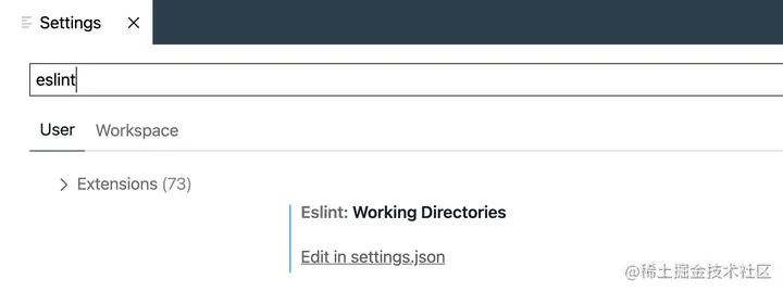 我们打开vs code的设置,找到eslint Working Directories,点Edit in setting.json