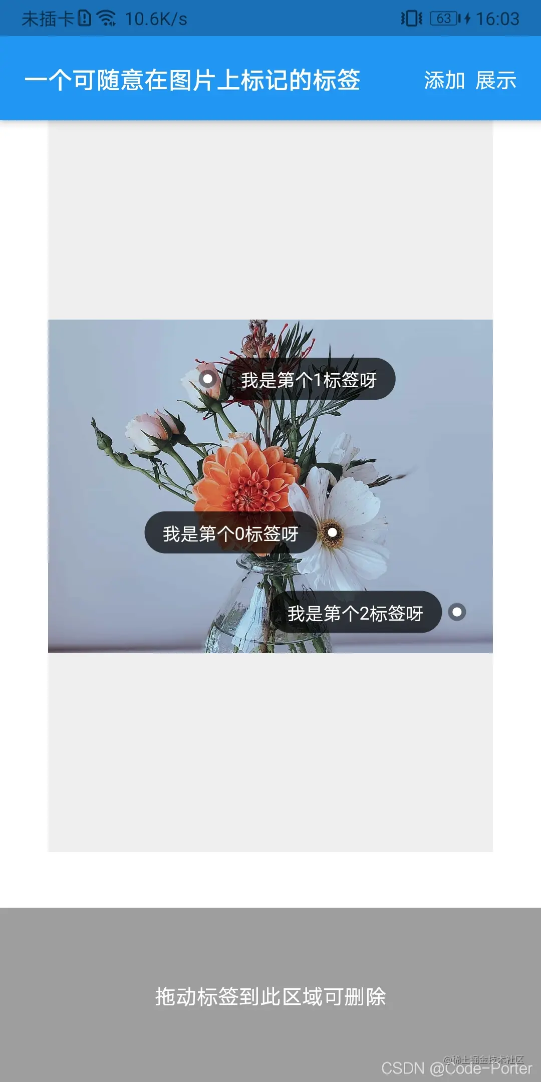 - 标签只能拖动圆点,文字部分是不能拖动的