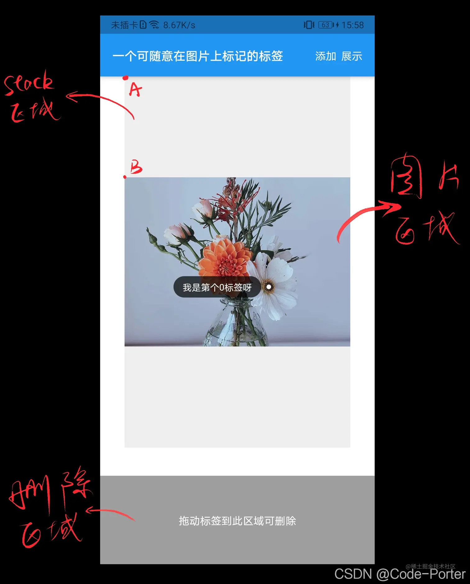 - 同理,标签删除也只需要知道删除矩形在屏幕上的位置就可以了