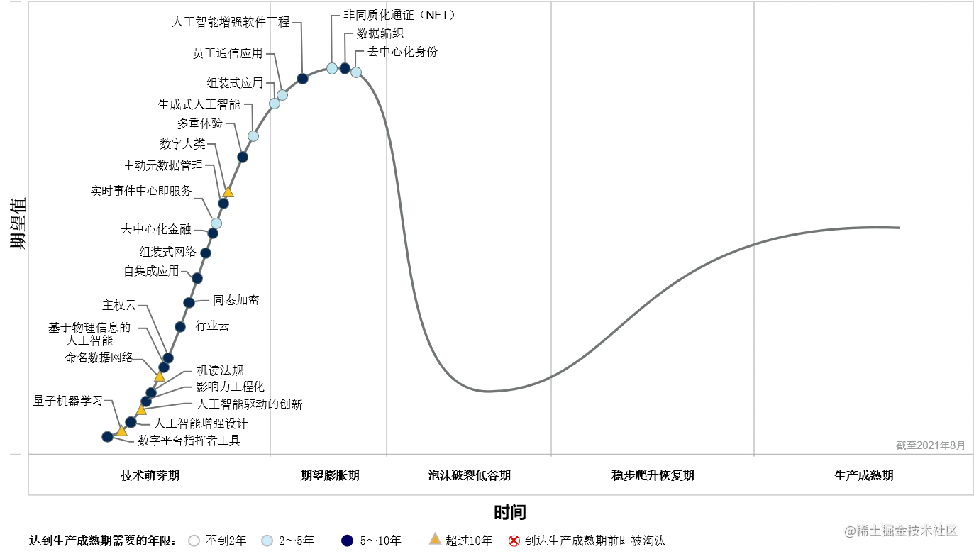 根据全球领先的信息技术研究和顾问公司Gartner最新发布的“2021年新兴技术成熟度曲线”(Hype Cycle for Emerging Technologies, 2021),建立信任,加速增长以及塑造变革将是三大主要趋势,并可推动企业机构去探索诸如非同质化通证(NFT)、主权云、数据编织、生成式人工智能和组装式网络等新兴技术从而确保竞争优势。