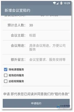 可以申请场地打扫、现场招待服务,这需要会议室公司自行联系服务提供方
