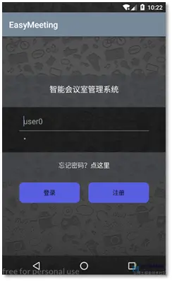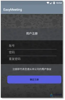 APP上只支持用户账号登录。点击登录,即可进入主页面,默认为会议室租约订单列表。点击注册,则跳转到用户注册界面,如图所示。