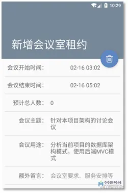编辑右下角的加号按钮,进入添加会议室租约的界面。为了便捷起见,用户不需要手动选择会议室,只有默认的“智能匹配会议室”选项。从列表中点击某一项,则会进入编辑租约的界面。添加和编辑分别如下图所示: