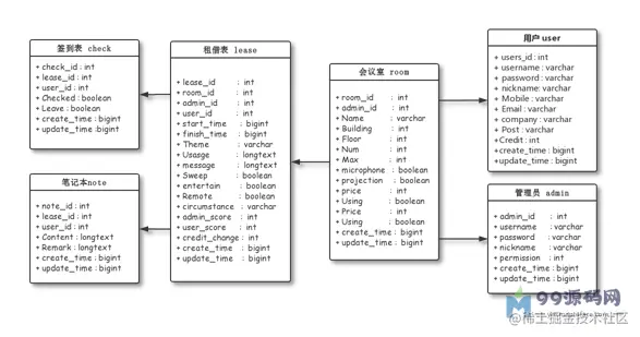 会议室租借表(lease):用于存放用户与会议室的租约数据
