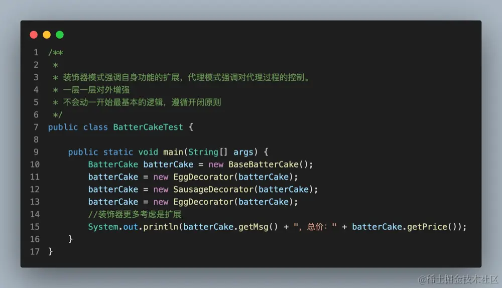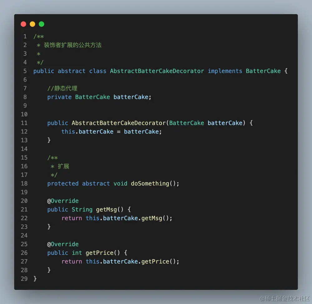 装饰者模式核心功能点在将可扩展的点单独抽出来提供扩展,也是提供模板类