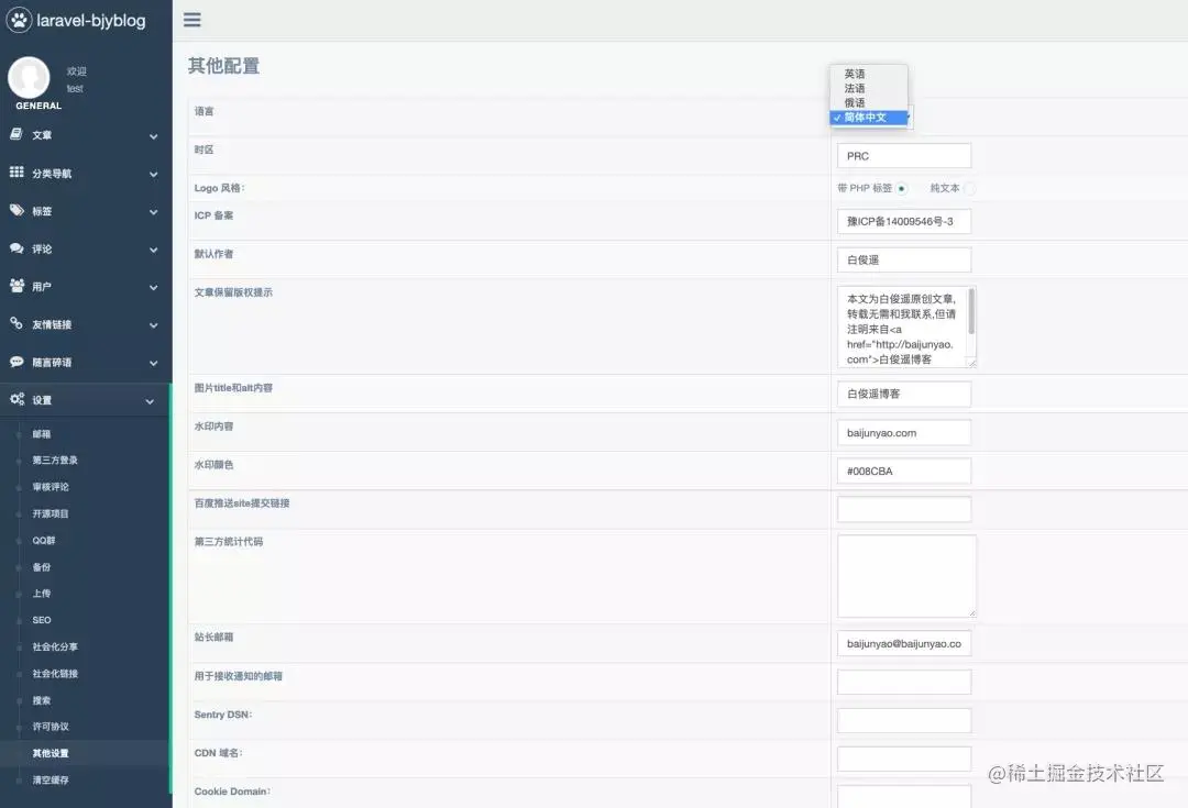 如果是自己部署的bjyblog,默认是英文的,可以点击设置→其他设置,切换为中文
