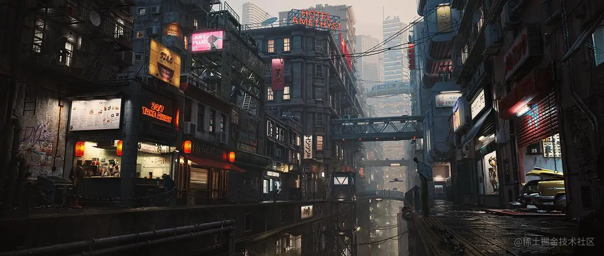 这个项目的制作没有绘制2D概念,基本上都依靠现实生活中的照片和想象力来进行3D动态设计。这就是为什么获得良好参考以激发想象力并为我提供足够的信息,以便进行有趣且实用的设计的原因。并且,最棒的是我已经有了一个故事,它有非常具体的对城市的描述,所以可以确保每个细节都可以支持这个故事。