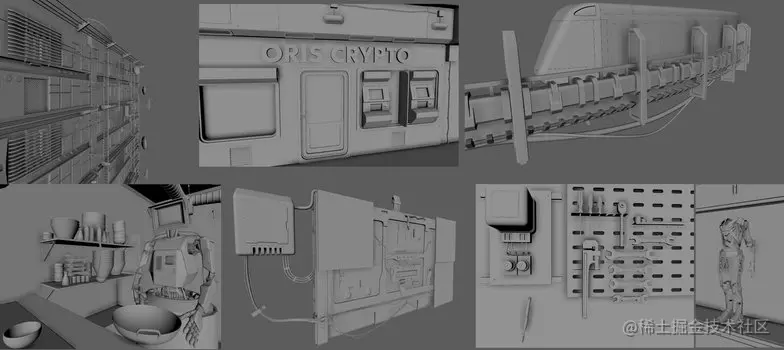 我尽力做到所有的模型同样的整洁,然后结合使用细分和多边形建模来完成项目的东西。我最初的计划是对所有内容进行细分,但这会使场景变得越来越复杂,并且文件会变得缓慢。我喜欢使用的一种技术是对带有倒角的模型进行多边形建模,但是同时还要使拓扑保持干净。因此,如果我需要将其转换为细分网格的话,那么我所要做的就是添加更多的边缘循环并稍微整理干净它们。