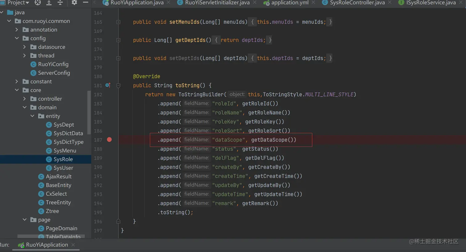 顺着污点传播链,跟进RuoYi/ruoyi-common/src/main/java/com/ruoyi/common/core/domain/entity/SysRole.java文件