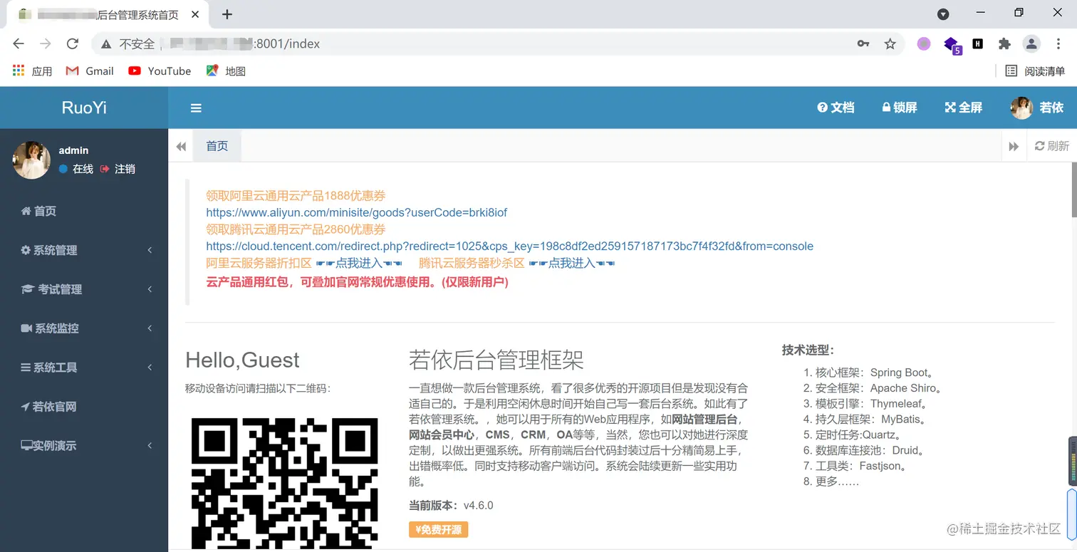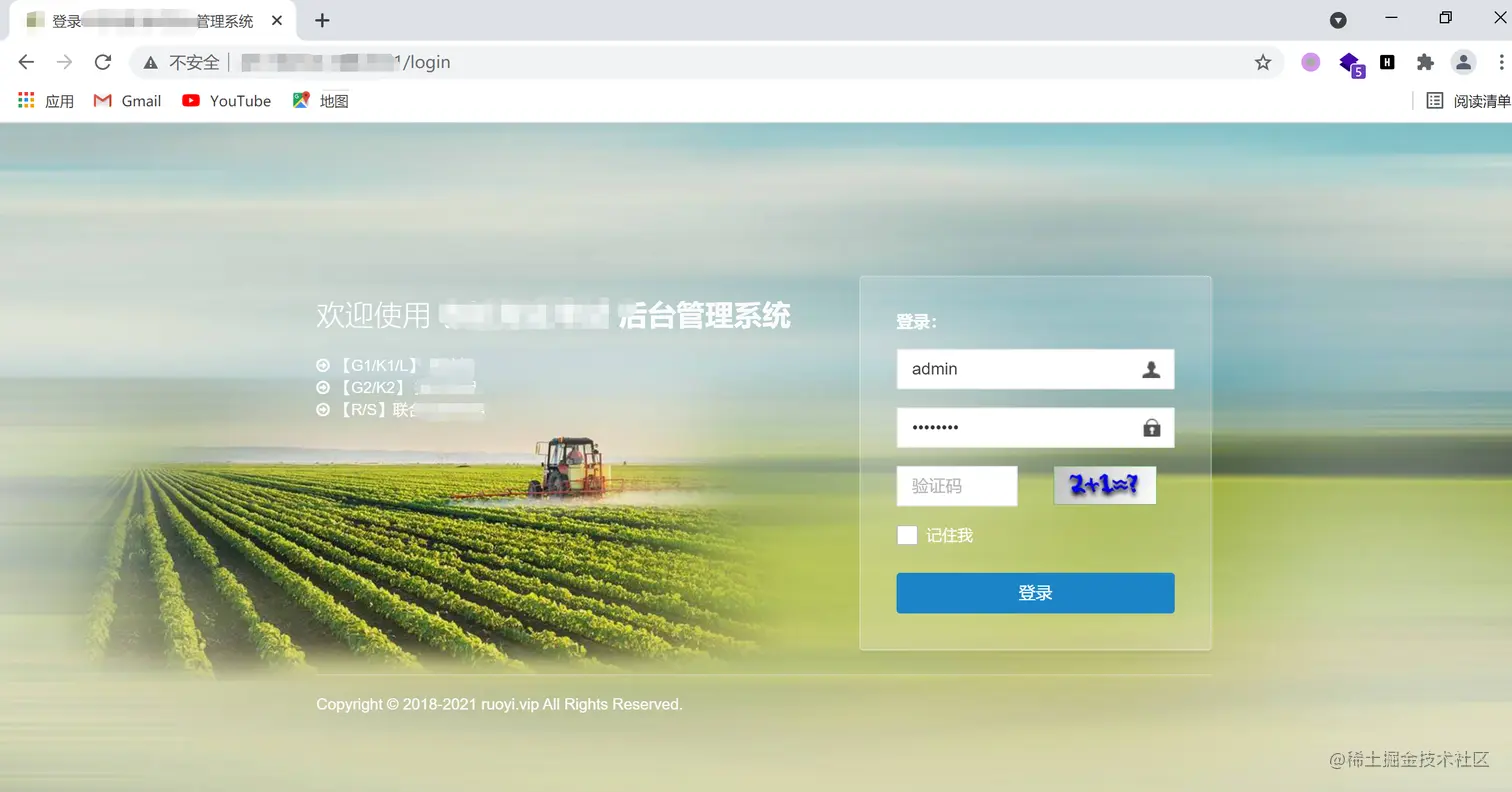 打开给定的地址,看到这个界面就觉得很熟悉,之前审报告的就是就看到很多回,若依没跑了,站点应该只是更改了一些静态资源。