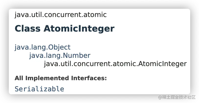 AtomicInteger位于JUC包下,和普通的Integer一样继承自Number类,但是并不完全对等Integer,这个类知识对Integer的原子性操作的一个扩充。