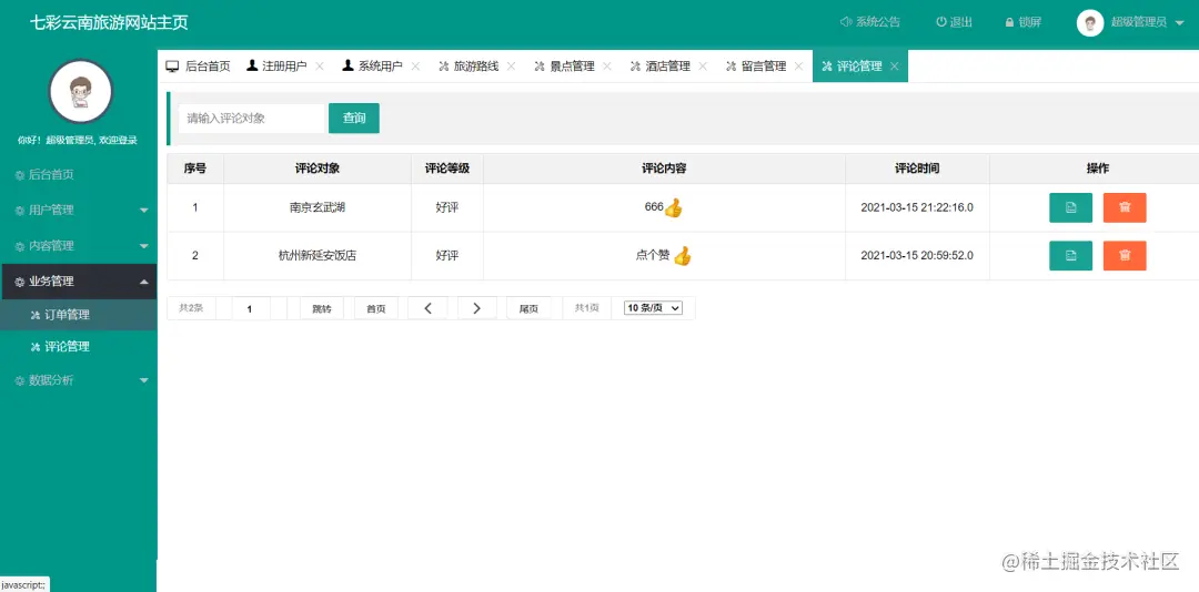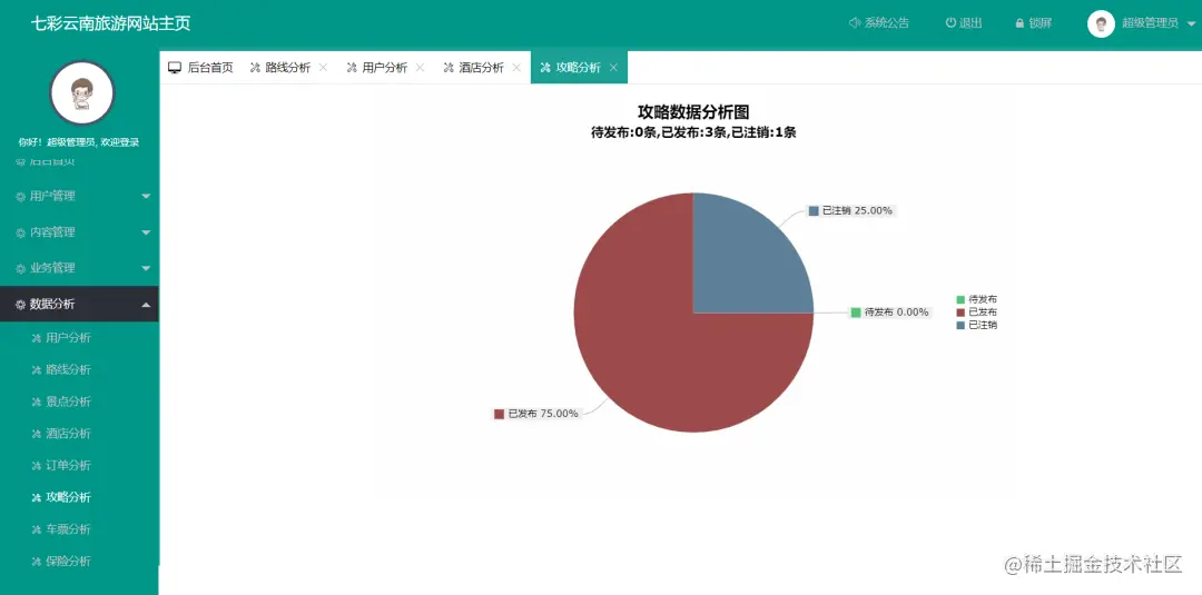 攻略管理 可以发布一些比较推荐的旅游攻信息,包括旅游地点,旅游周期,途径路线等,通过支持多文本的信息,对已经发布的可以根据实际的景点开发情况,进行修改和删除。