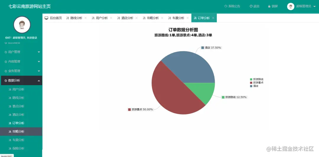 订单分析 对于本网站的用户订购服务的数据进行统计分析,以图形化形式显示出来。