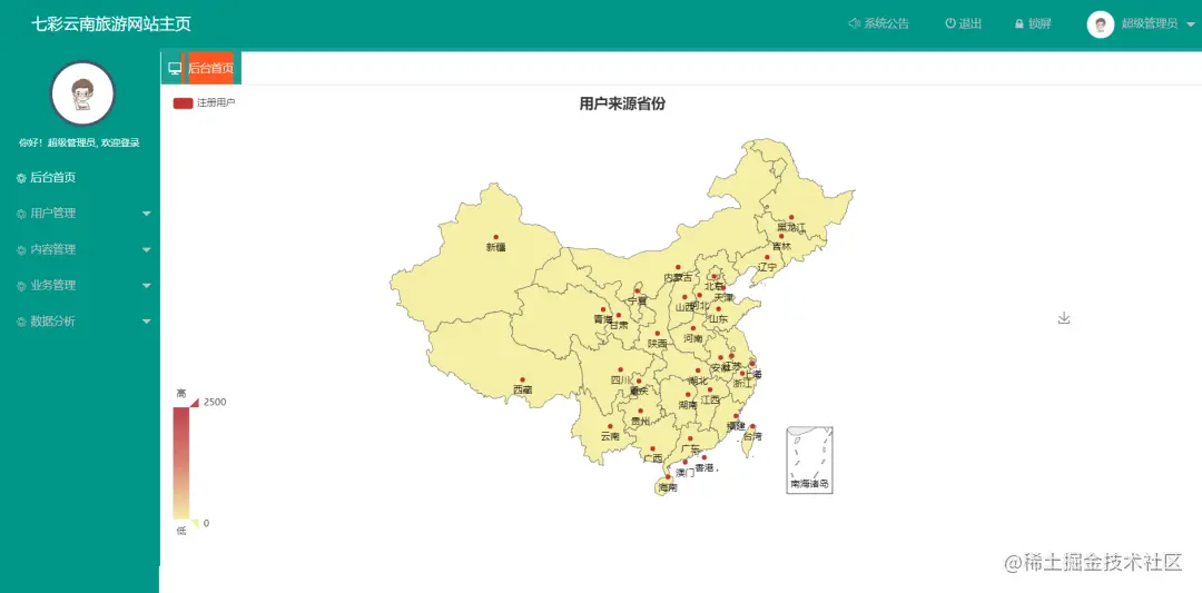 用户统计 以地图形式统计出本网站在全国的所有省份的网站注册人数。