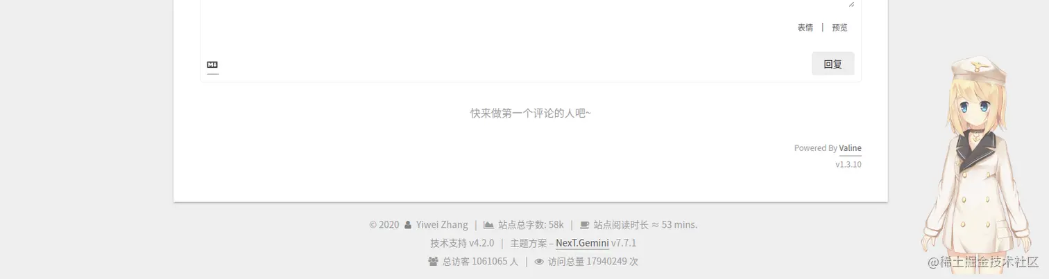 主题配置文件- valine 评论中的visitor开关来替代不蒜子的统计功能。