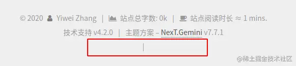 Hexo根目录/themes/next/layout/_partials/文件夹中修改 footer.swig,在最后一行前加入代码: