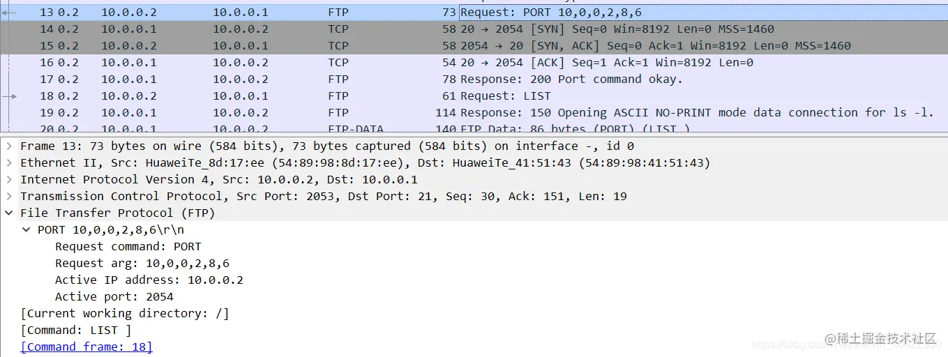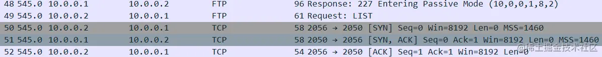 (4)服务器的 20 号端口与客户端建立起数据连接,使用TCP 三次握手(第二次TCP三次握手);