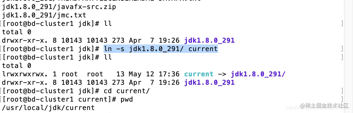 ln -s jdk1.8.0_291/ current