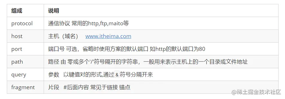 统一资源定位符 (Uniform Resource Locator, URL) 是互联网上标准资源的地址。互联网上的每个文件都有一个唯一的 URL,它包含的信息指出文件的位置以及浏览器应该怎么处理它。 URL 的一般语法格式为: