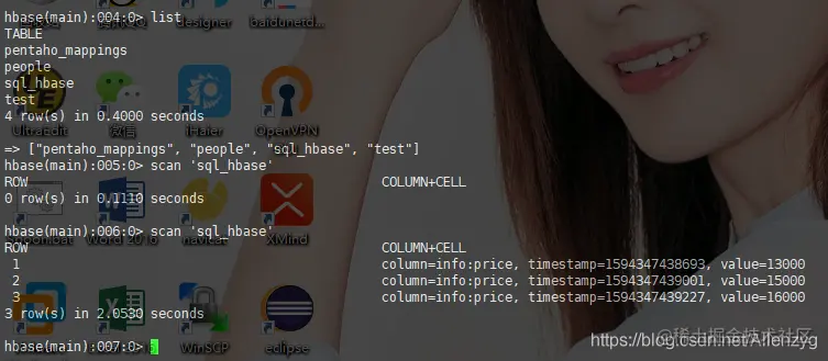 补充:上述过程会把MySQL数据库中表历史数据先同步到Hbase表,然后数据增量同步。