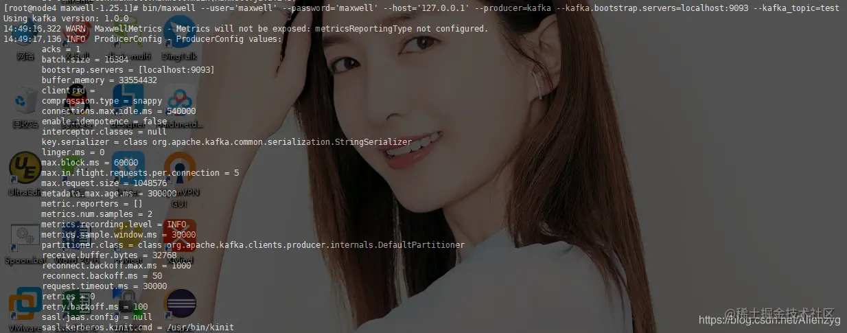bin/maxwell --user='maxwell' --password='maxwell' --host='127.0.0.1' --producer=kafka --kafka.bootstrap.servers=localhost:9093 --kafka_topic=test