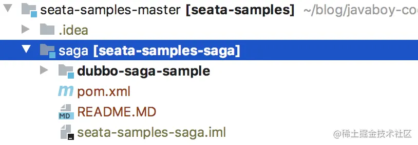 我们还是使用官方的案例。不过还是松哥之前说的,官方的案例容易导入失败,并且里边有的地方有问题,所以小伙伴们可以直接在公众号后台回复 seata-demo 下载本文案例。