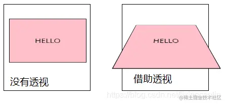 - 如果想要在网页产生3D效果需要借助透视(理解成3D物体投影在2D平面上)