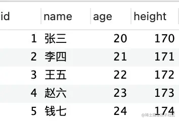 insert into user ('name', 'age', 'height') values ('钱七', 24, 174);