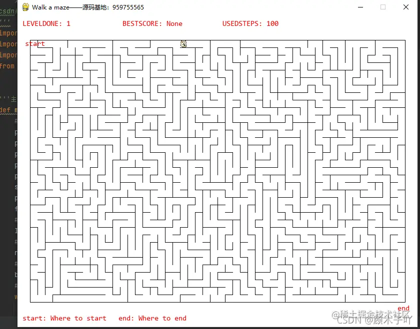 pygame.display.set_caption('Walk a maze——源码基地:959755565')