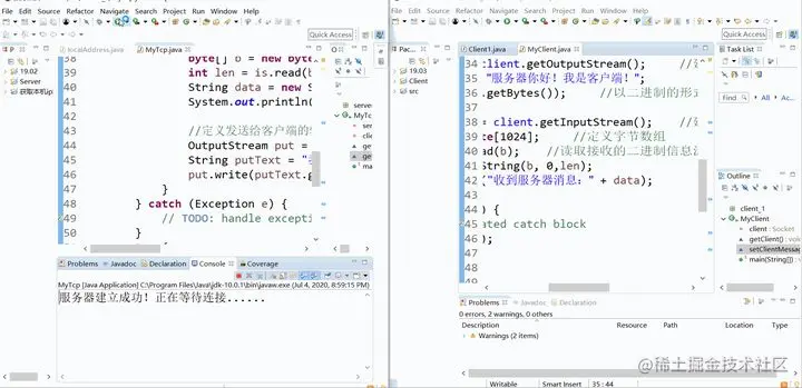 **同时要注意:**在客户端和服务器搭建成功之后,应该先打开服务器等待连接,再打开客户端进行连接,同样在进行关闭时,应该先关闭客户端,再关闭服务器。