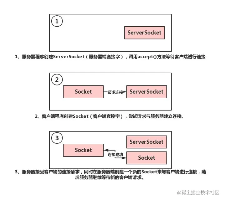 摘要:进行TCP协议网络程序的编写,关键在于ServerSocket套接字的熟练使用,TCP通信中所有的信息传输都是依托ServerSocket类的输入输出流进行的。