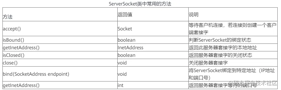 以下是ServerSocket类中一些常用的方法: