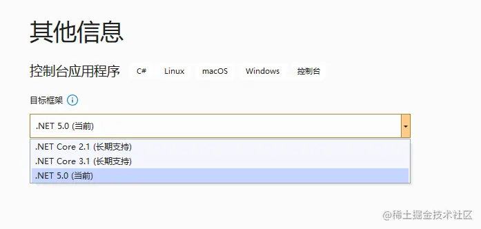 但是我们选了.net core 后可以选择我们的目标框架,如果装了多个版本。