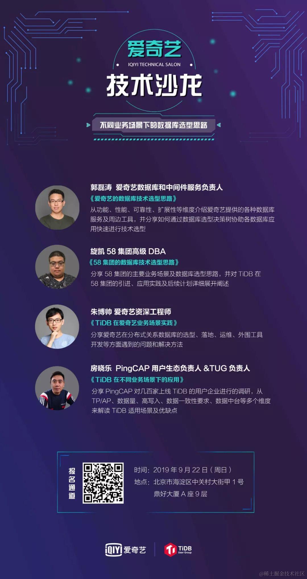 爱奇艺“不同业务场景下的数据库选型思路”技术沙龙火热报名中! !!