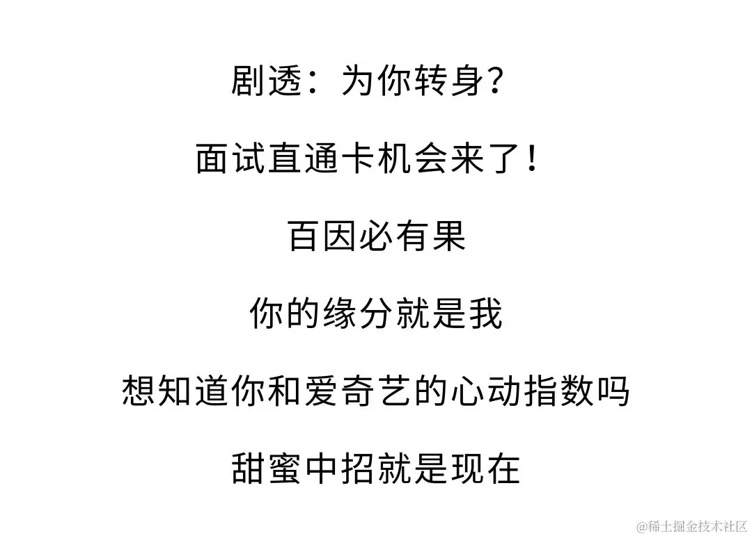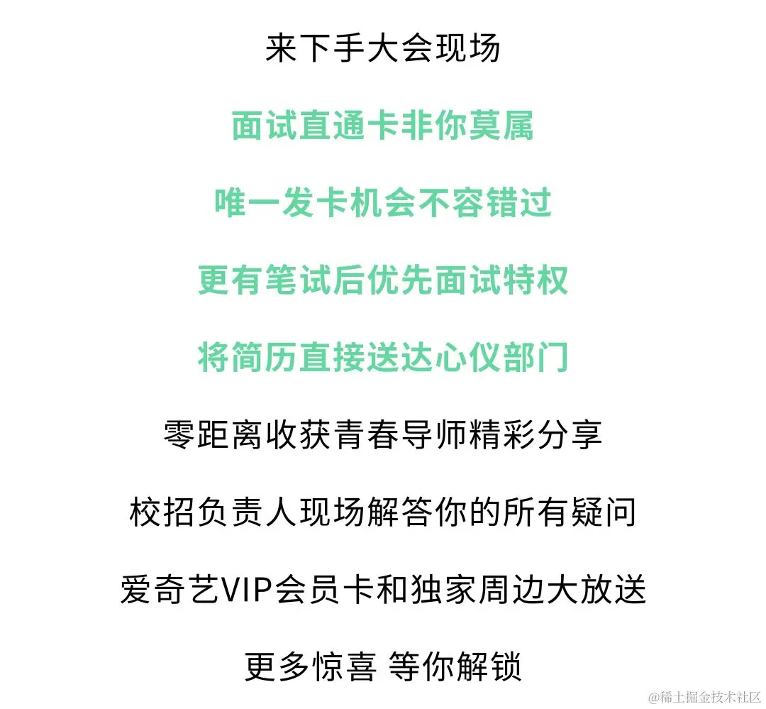 技术专场 | 面试直通卡or优先特权?还不下手等过年吗 爱奇艺技术 2021-08-28 1,568 阅读1分钟 点击阅读原文报名 别错过技术专场的VIP特权! end 扫一扫下方二维码,更多精彩内容陪伴你! 爱奇艺技术产品团队 简单想,简单做