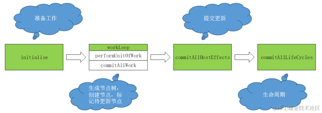 节点树主要分为创建和更新两个过程,每个过程都可以分为以下四个阶段: