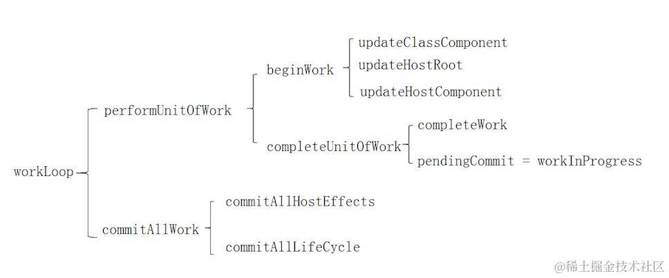 - commitAllLifeCycles。改变root.current的值;执行生命周期函数:componentDidMount、componentDidUpdate等;执行ref函数。